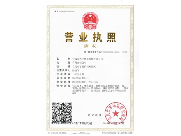您好,歡迎訪問宜興市天宇化工機械有限公司官網! 在線留言 網站地圖
